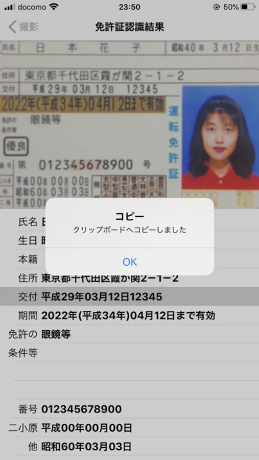 最新のAI技術を使用して、日本の運転免許証の内容を完全にオフラインで認識することができます。免許証イメージをサーバーにアップロードする必要はありません。端末のみ認識されます。