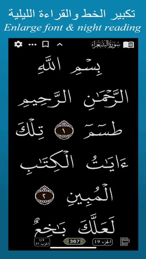 2- دعم التكبير والتصغير لتغيير حجم خط القرآن.