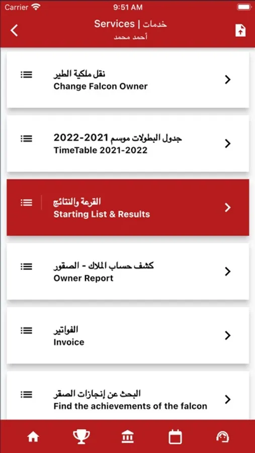 The Application provides several services related to all falconry championships organized by Hamdan Bin Mohamed Heritage Center and information about the championships .