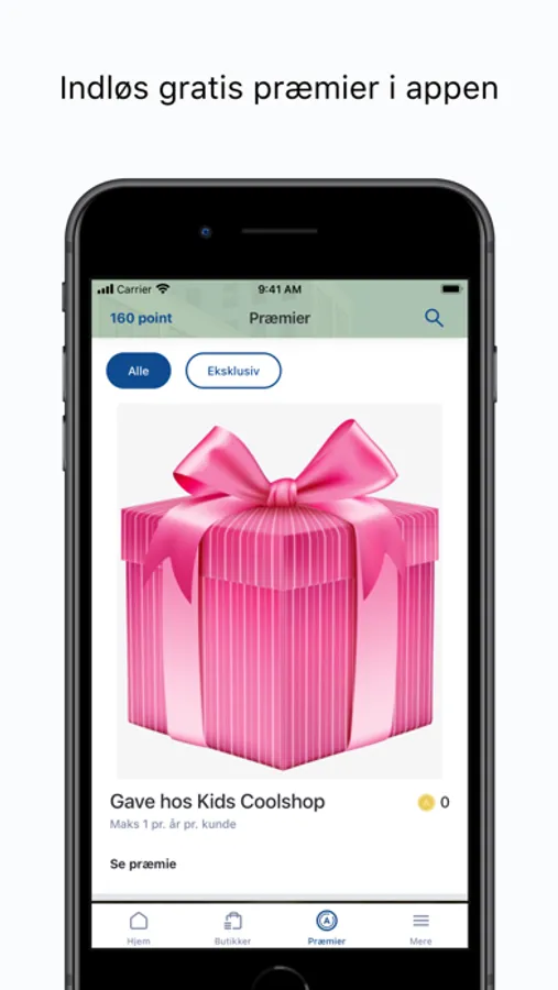 Når du har optjent nok point, kan du indløse dem til fede, gratis præmier fra butikkerne. Præmierne i pointshoppen opdateres løbende, så er du ikke interesseret i nogen af dem i dag, så kig i appen igen i morgen. Læs mere om vilkår for optjening af point i appen.
