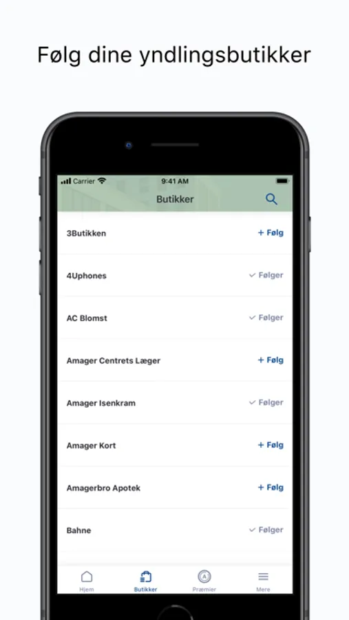 I Amager Centret appen har du mulighed for at følge dine yndlingsbutikker og få notifikationer fra dem. På den måde har du altid de nyeste tilbud, rabatter, varer eller udsalg, der matcher dine præferencer, lige ved hånden under din shoppingtur. Du vælger selv hvilke butikker, du ønsker at se tilbud og nyheder fra – det sikrer dig mod irriterende notifikationer fra butikker, du ikke har interesse i.