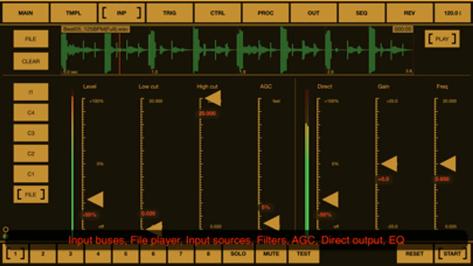 BeatCutter supports up to 4 external input and output channels, playback up to 8 files at once, works as a multi-channel audio unit. With DAWs and hosts, you can use this application as an effect plugin. The application interface is designed for convenient work with the most common MIDI controllers containing 8 faders and 8 knobs.