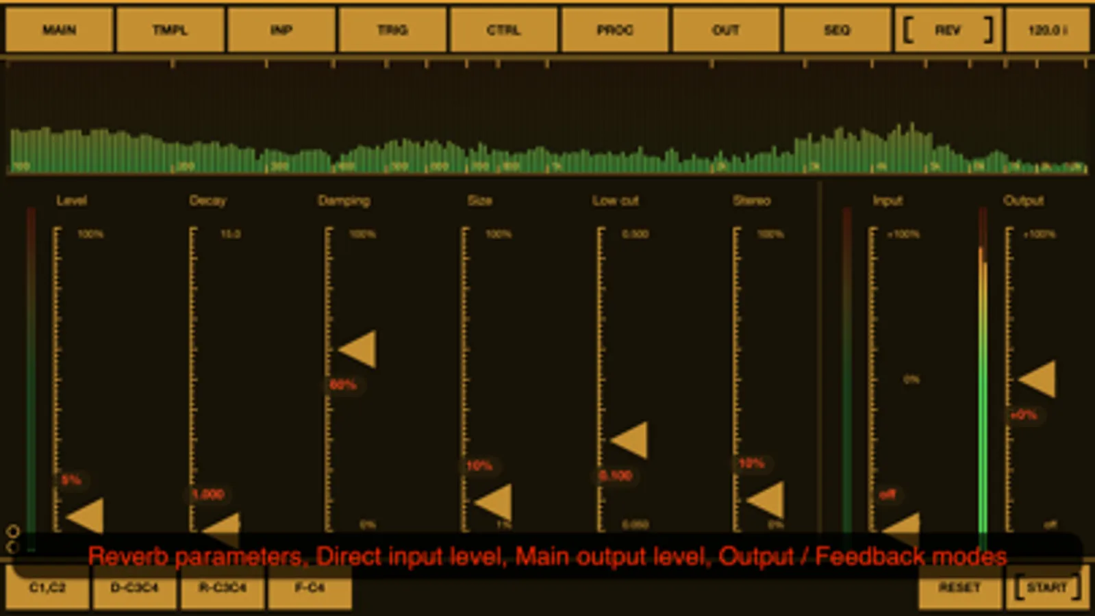 One of the most interesting and experimental features of this application is the feedback mode. This is not like analog feedback when positive loop gain occurs at some more or less stable resonant frequency. It looks more like fractals when the next level is similar to the whole structure, but in this case with constantly changes. We can say that it works like a sound structure that evolves and changes itself. This is an incredible ability to create perfect sound abstractions, unrelated to any external samples or signals and it opens up a huge potential for experimentation and inspiration.