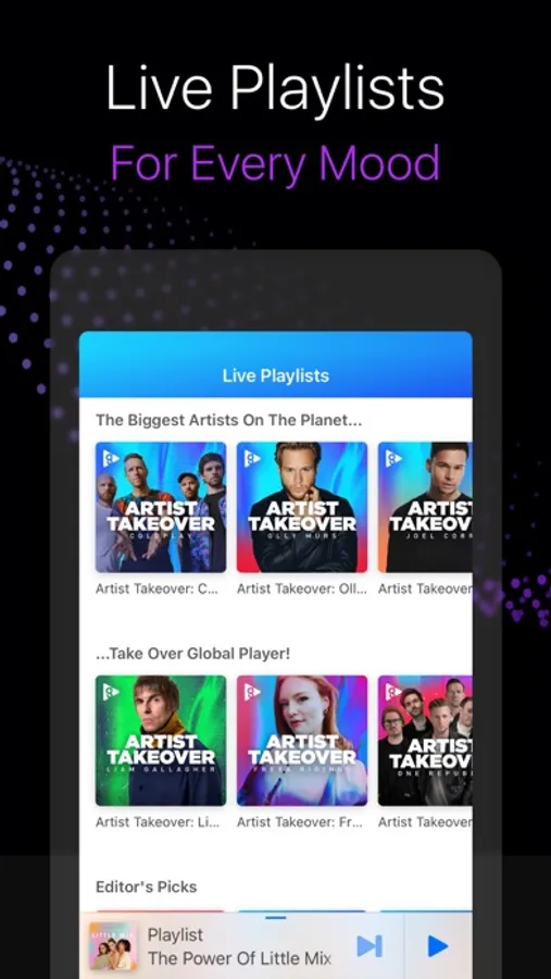 • Live Playlists - We’ve got music for your every mood covered. From editor’s picks to artist takeovers, the biggest hits of the year to that perfect playlist for focus and relaxation.