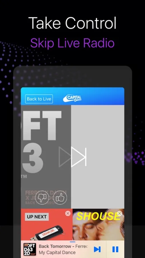 • Take Control: Skip live radio. Listen live to Global’s radio brands and skip* any songs you’re not loving – there’s no limit. Plus like and dislike tracks to get more of what you love. Just swipe away to customise your radio experience.