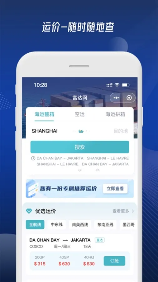 价格动态、货物跟踪、船期变化,都将第一时间推送至客户终端。