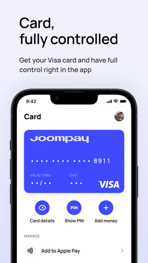 • Get a virtual debit card for free and use it for safe and secure online shopping. We also support Apple Pay in case you want to add Joompay card to your wallet.