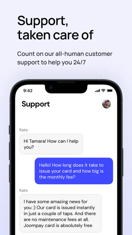 If you have any doubts or questions, please do not hesitate to contact our all-human support in the app or via email: help@joompay.com. We are here to help and to support you.