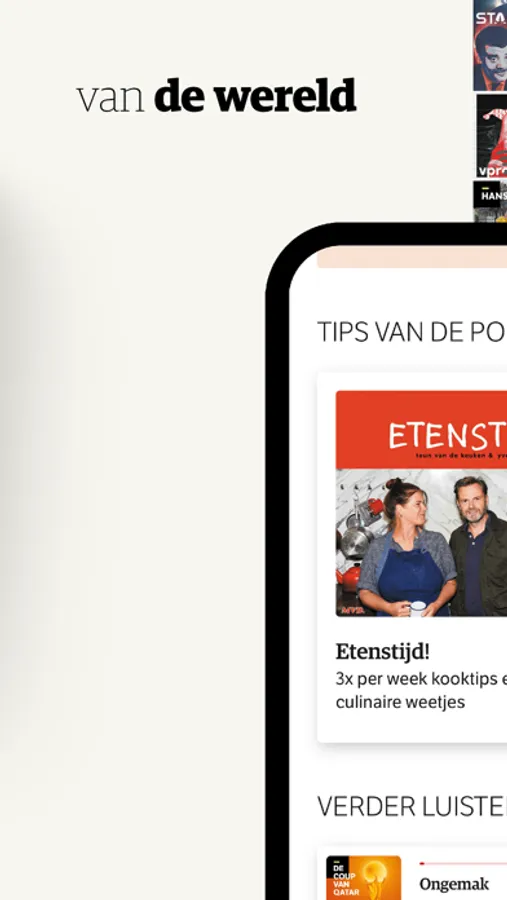 Maar ontdek vooral ook de beste podcasts van makers over de hele wereld, geselecteerd door ons, de journalisten van NRC. Iedere week tips de Podcastclub de beste podcasts die wij hebben ontdekt. Deze tips ontvang je, als je wil, per mail en vind je natuurlijk terug onder het kopje ‘Ontdekken’ in de app.