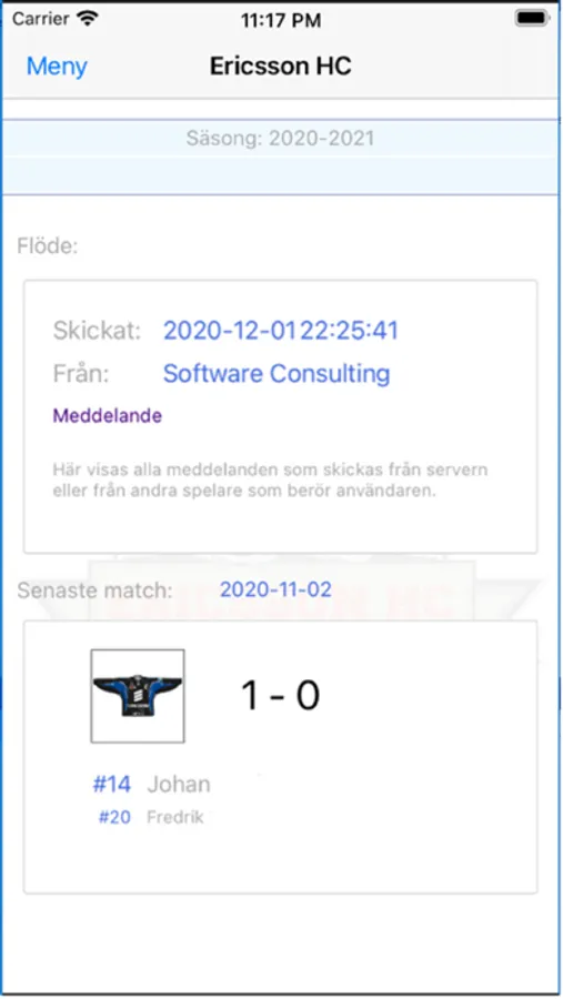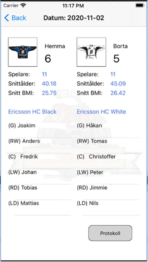 Appen hämtar historik för spelade hockeymatcher och presenterar målprotokoll. Statistik sparas för varje registrerad spelare såsom antalet gjorda mål, assist, totala poäng, poängsnitt per match etc. Det går också att se datum för kommande hockeytillfällen och vilka spelare som har tackat ja eller nej till att vara med på varje tillfälle. Appen riktar sig enbart till registrerade hockeyspelare i ett registrerat lag hos SoftwareConsulting. Lag och hockeyspelare kan registreras efter förfrågan.