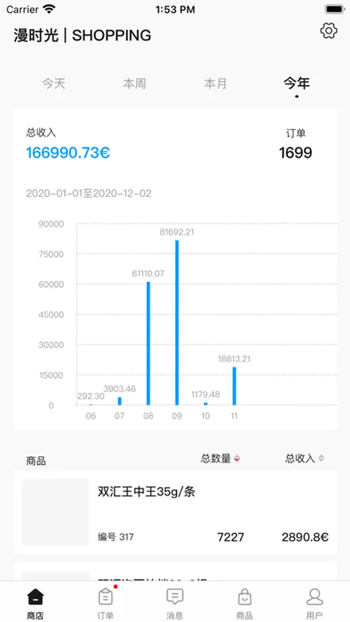 是"漫时光-购物"平台 入驻商家所使用的掌上管理软件。