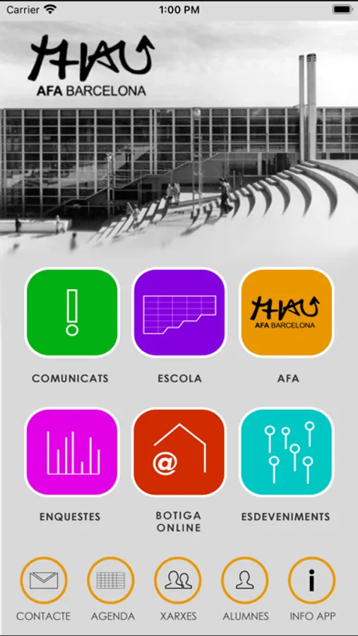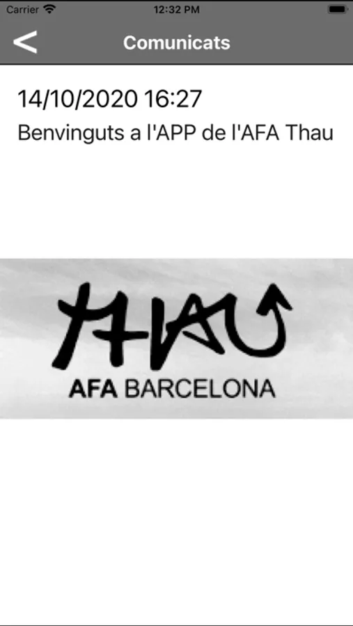 App de l'AFA Escola Thau. L'aplicació permet una comunicació directa entre l'AFA i les families dels alumnes. Consta d'una primera plana de registre on s'identifica l'usuari. A continuació apareix un menú amb diverses opcions: Comunicats, Escola, AFA, Enquestes, Botiga solidària, Esdeveniments. A la barra inferior hi ha la secció Contacte, Agenda, Xarxes, Alumnes i Info App.