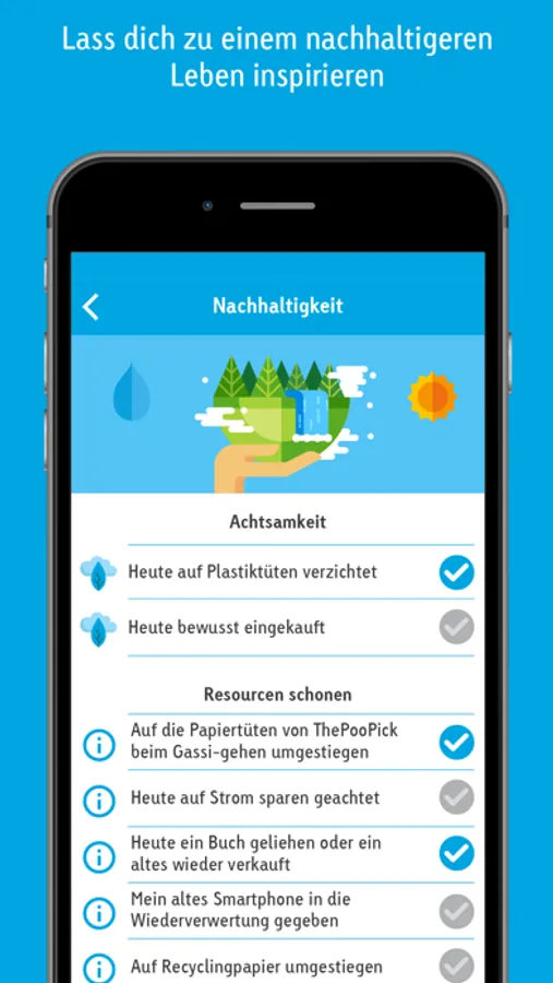 Aber auch in anderen Lebensbereichen kannst du Punkte verdienen, durch gesunde Ernährung, nachhaltiges Leben zu Hause und im Büro.