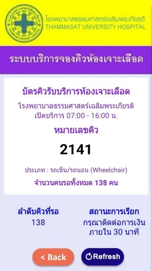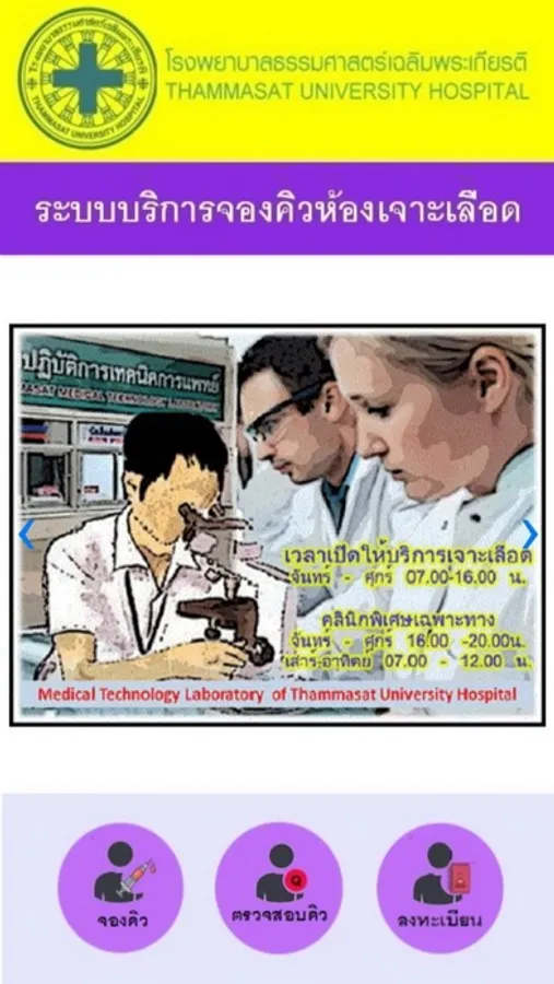 ระบบบริการจองคิวห้องเจาะเลือด โรงพยาบาลธรรมศาสตร์เฉลิมพระเกียรติ (Queue Mobile Application for Medical Technology Laboratory Thammasat University Hospital)