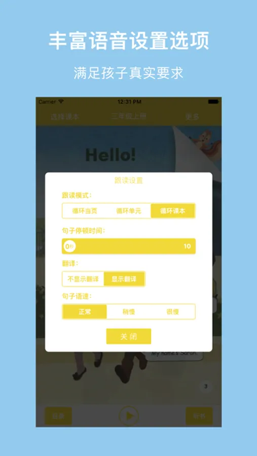 一下按钮,立马点读变听书,简单易用两设置: