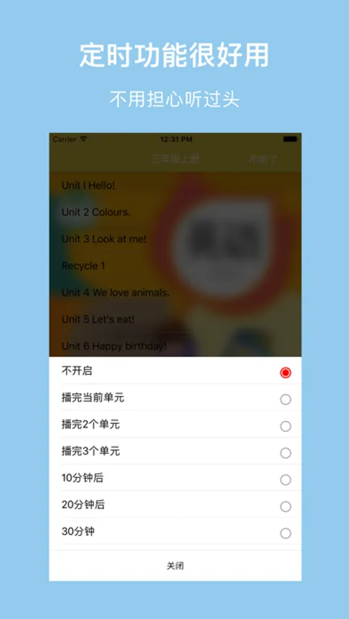 2、定时关闭:自动停止朗读的时间,你来设定