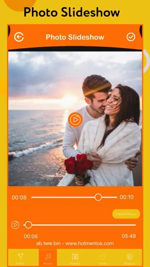 Make Slideshow Video from your memorial Images with Beautiful Theme or Frames and Movie Music.