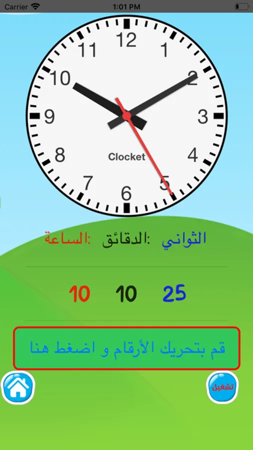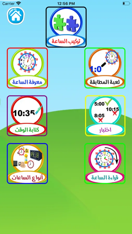 تعلم الساعة باللغة العربية تطبيق مفيد للمبتدئين ، يحوي العديد من الصفحات التعليمية الممتعة .