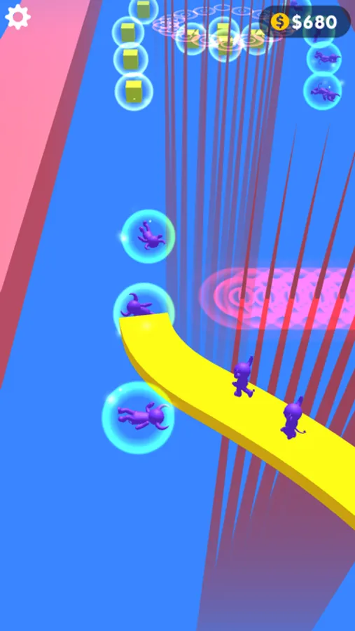 Be careful, picking up the guys is not easy at all, but it is also important to deliver them safe and sound to the finish to do your victory dance! The task is very difficult - walls, blades and knocking towers will interfere with you, if you run into them - it is unreal that something can help you and your little men will crash against the walls.