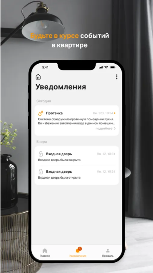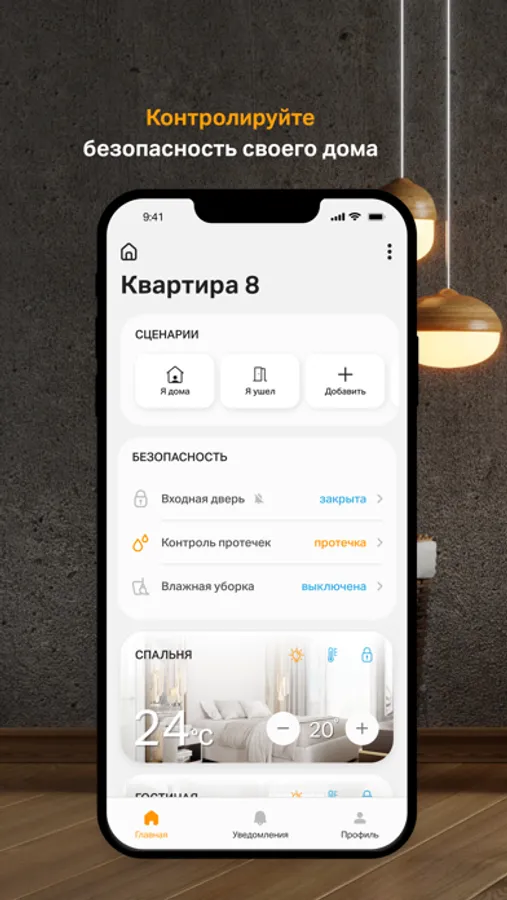 Датчики протечек, пожарные и охранные системы всегда начеку: в случае критической ситуации система автоматически примет защитные меры, а вы мгновенно получите уведомление.