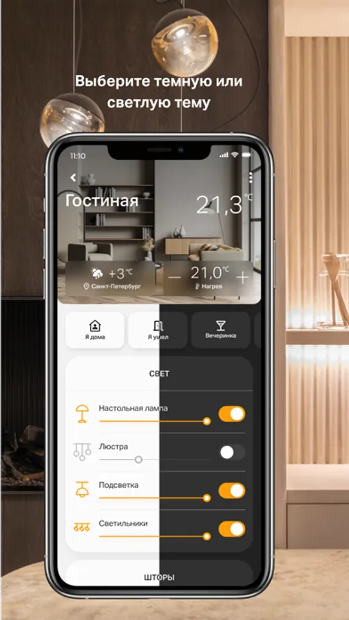 Управляйте освещением, шторами, климатом, теплыми полами и домашней техникой в несколько кликов. Настройка всех устройств доступна прямо из приложения.