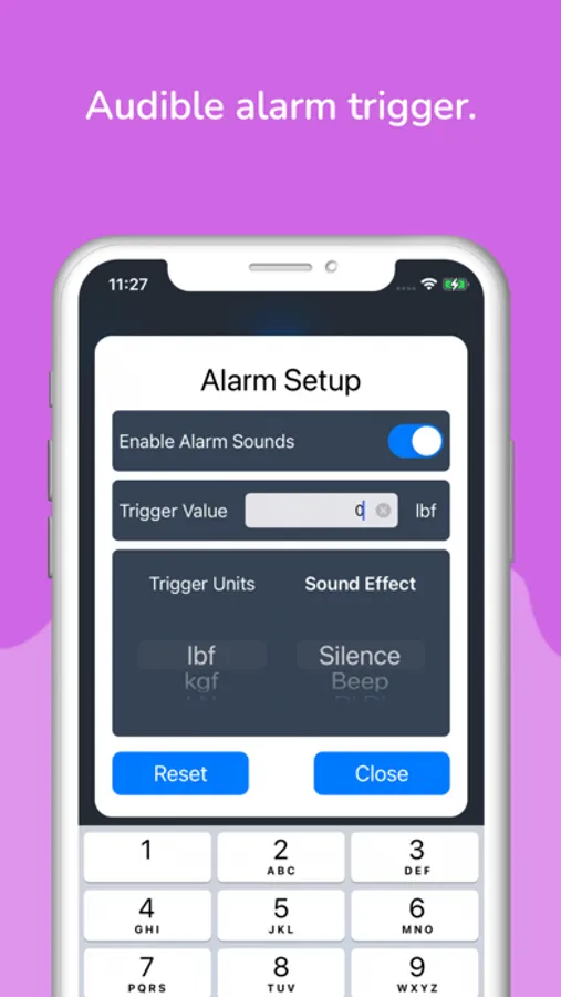 - Define alarm threshold value with audible alert sound
