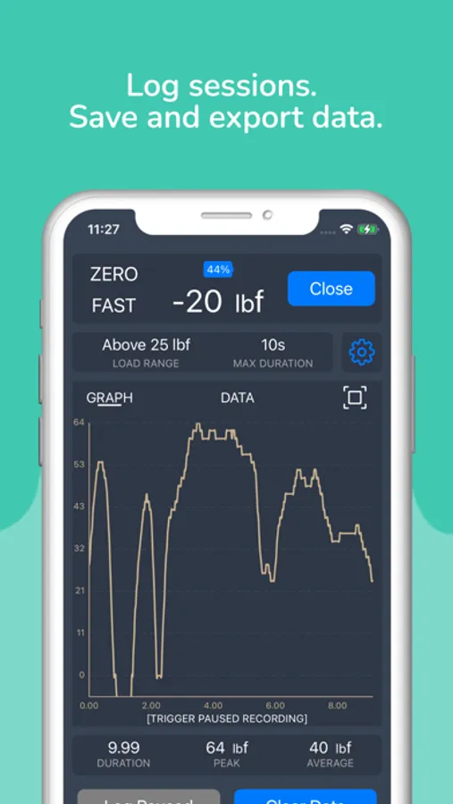 - Record session data. Save, load, and export data as CSV data