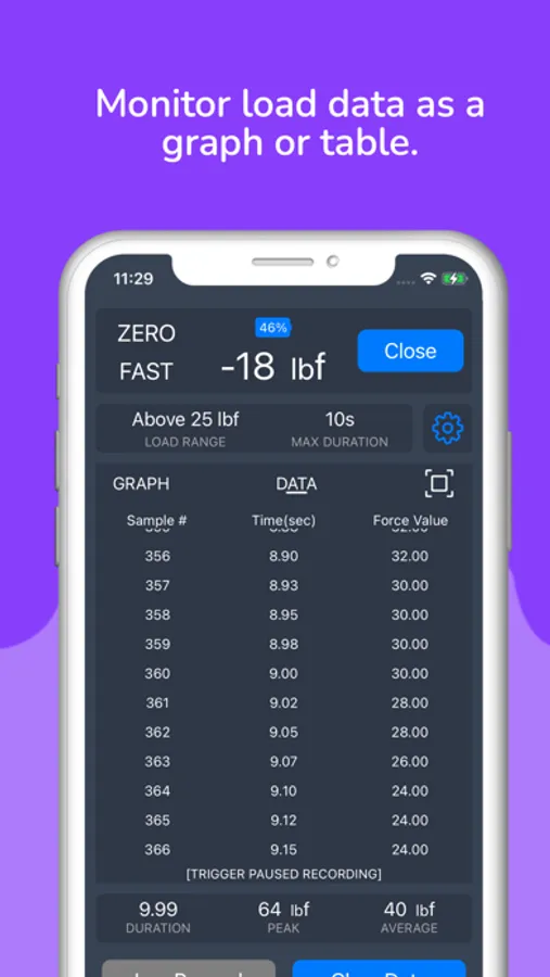 - Easily view and reset the peak load value