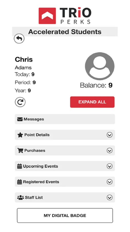 Trio Perks Family is a parents/guardians/student portal to the Trio Perks system. Parents/Guardians/Students can use the app to see the accomplishments and goals met through the Trio Perks program. For more information about Trio Perks please see our website (www.trioperks.com)