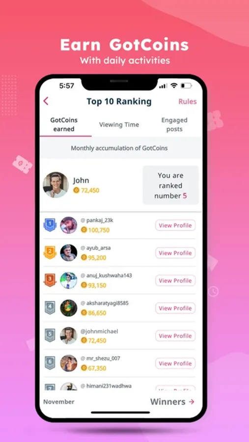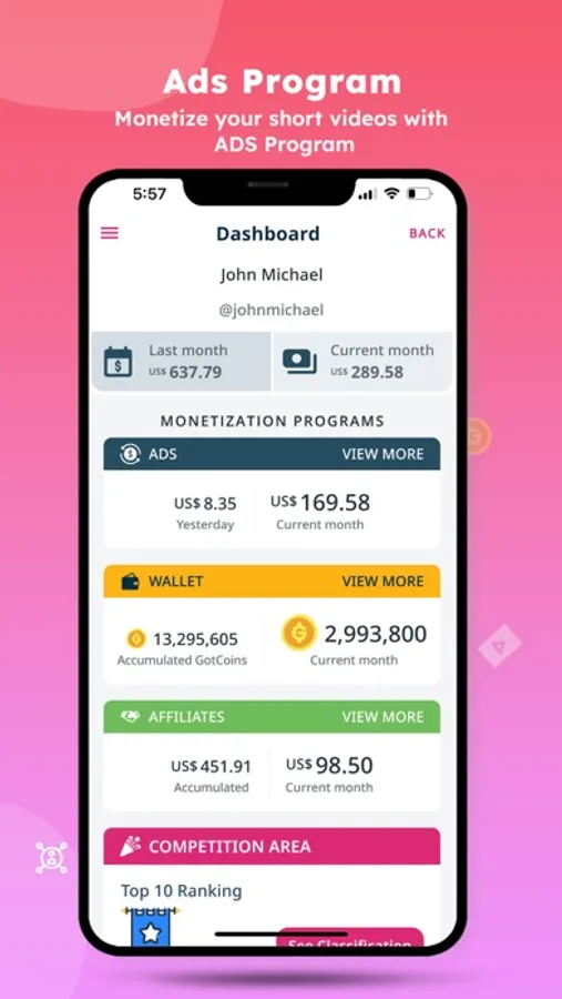 4. We also offer a fun and engaging way to all users making money by competing in our hashtag contests, Top 10 Ranking program and Sweepstakes.