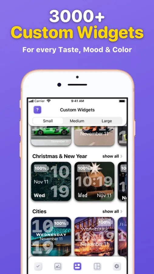 Make your Home Screen look fabulous using a Widgetizer! Discover a unique custom widgets gallery for every taste, color and mood, grouped in 30 different categories and more.