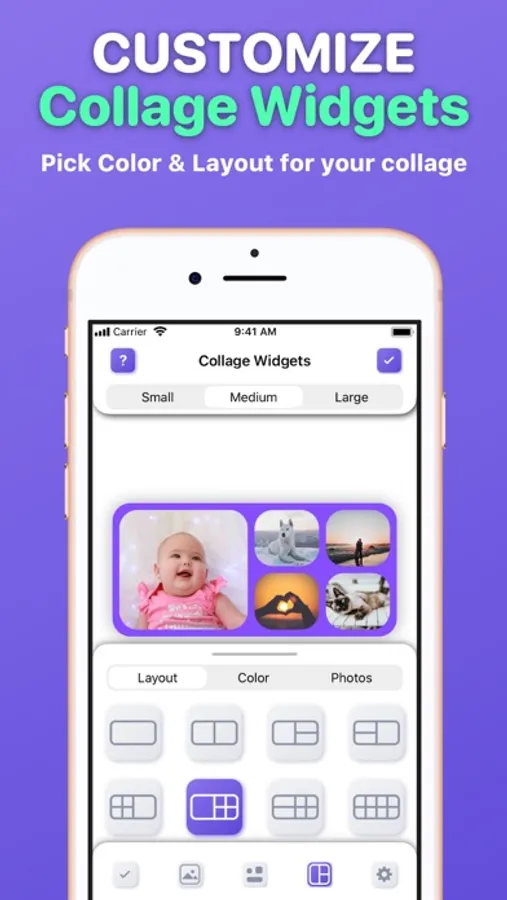 ■ Collage Widgets – create beautiful collage widgets from your Photos. Pick Color and Layout that suit your collage and widget size. Activate to add to your Home Screen;