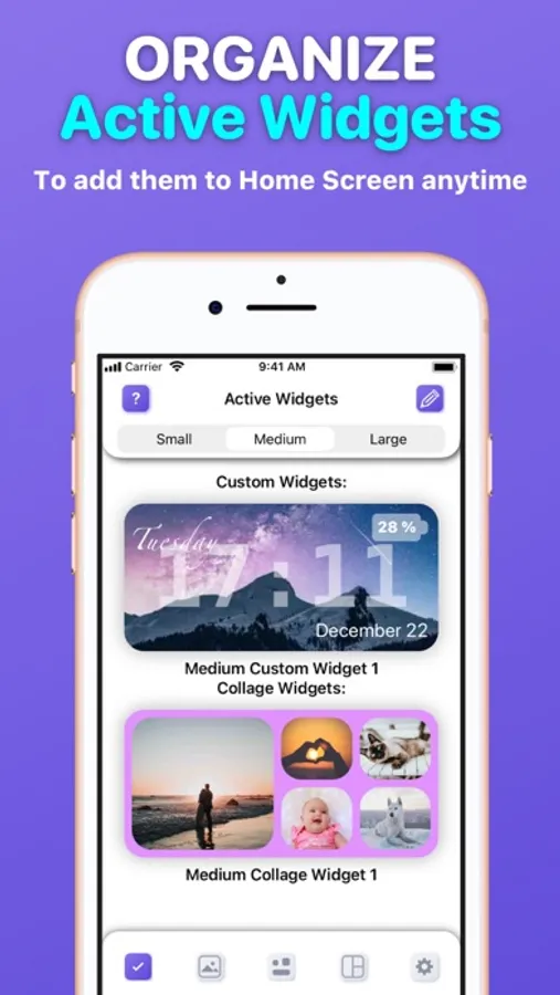 ■ Active Widgets – here are all your activated custom and collage widgets that you can add to your Home Screen;