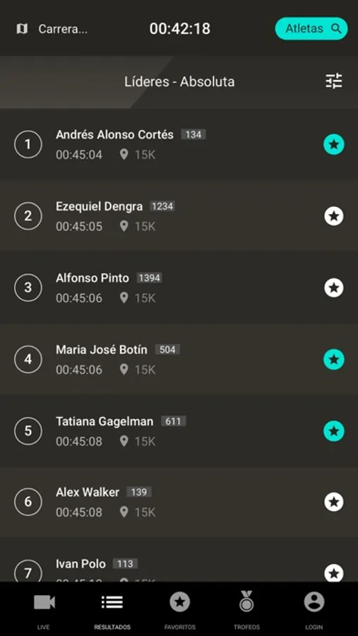Seguimiento en directo de corredores