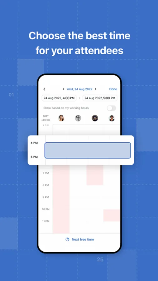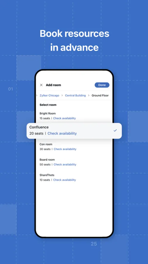 An event well planned is half executed! Plan ahead and book meeting rooms in advance by checking availability. You can also make sure you schedule the meeting at a convenient time for all attendees by checking when they are available and when they are occupied with other events.