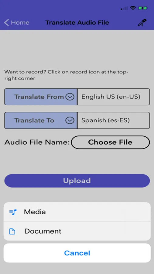 Voice & Audio Translate app lets you translate speech (online) and audio files (offline) into several languages. You could record your own audio files and upload them for translation. You could also import audio files from your cloud storage such as iCloud, Dropbox, Google Drive, iTunes media library etc. Stores upto 5 of your previously translated files which you could delete right from the app. The app provides authenticated signup & login mechanism or you could use your existing Google signin or Apple signin to use the app features completely free of charge.