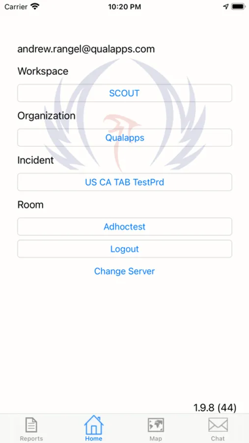 The SCOUT app allows users to access features such as General Message Reports, Chat, and Map viewing and markup for the SCOUT incident response system.