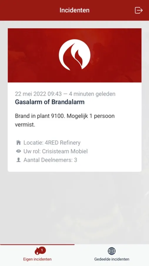 Na installatie kunt u inloggen met de gegevens van uw eigen platform in het inlog scherm. Bij nieuwe incidenten wordt u gealarmeerd d.m.v. Push notificatie en kunt in 1 oogopslag de eerste informatie zien van incidenten in uw organisatie.