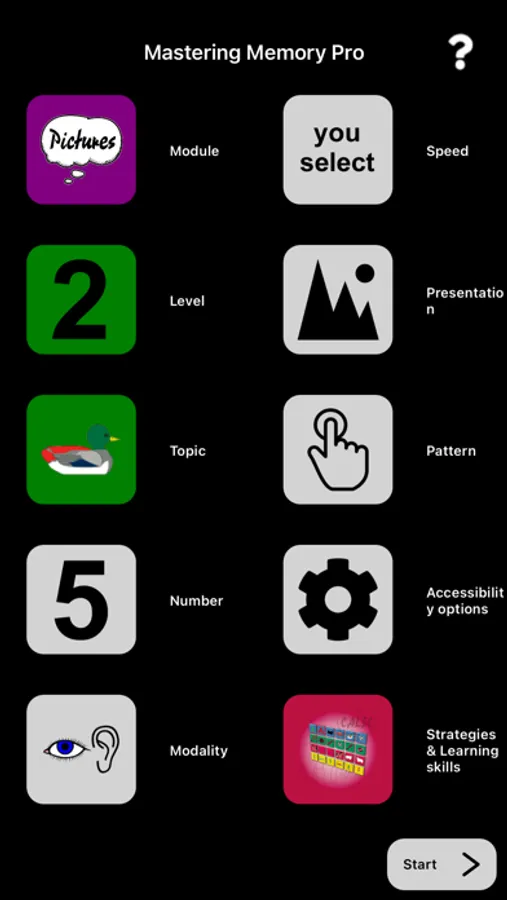 Mastering Memory Pro is great for schools and therapists to use as a tool to help them improve the short-term memory of their pupils and clients. It has modules suitable for children and adults. At its easiest it can be used with pre-school aged children (with a prerequisite for understanding the concept of same and different) and at its most difficult it is hard for most adults.