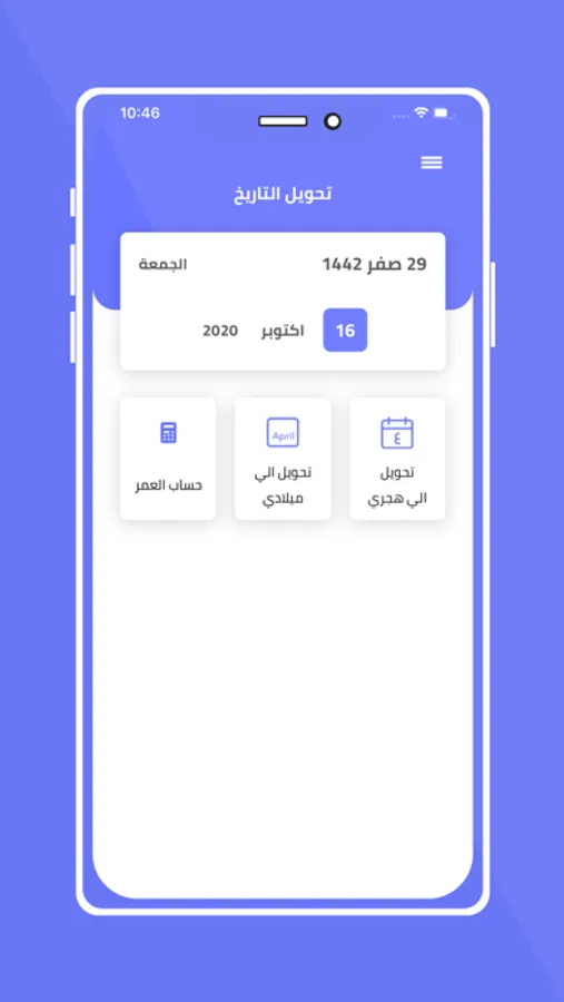 تطبيق تحويل التاريخ من الهجري إلى الميلادي ومن الميلادي إلى الهجري بشكل فوري وسهل وحساب العمر أعرف عمرك بالسنين والأشهر والأيام