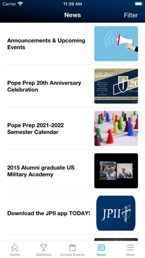 The JPII app provides parents, students, and faculty members with all the information they need in one place, conveniently accessed and formatted specifically for consumption on their mobile devices.