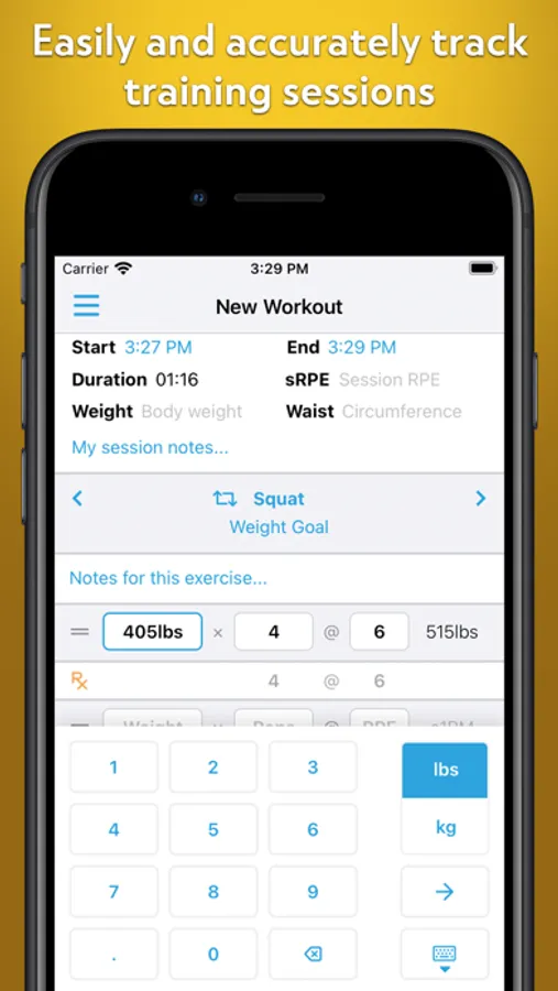 • Weight, reps, and RPE (Rating of Perceived Exertion)