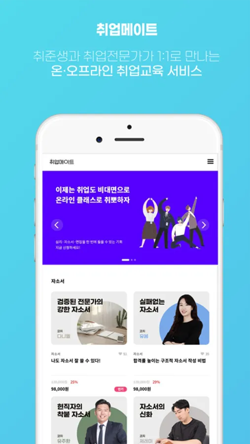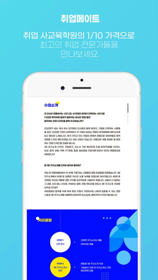 취업 사교육학원의 1/10의 가격으로 최고의 취업 전문가들을 만날 수 있습니다.