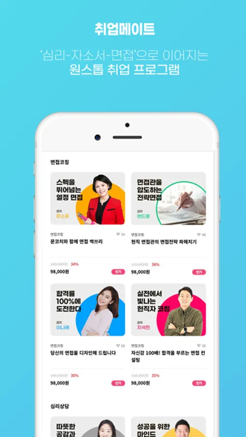 ‘심리-자소서-면접’으로 이어지는 원스톱 취업 프로그램을 제공하며,