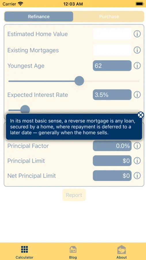The RapidReverse™ calculator is the fastest way to estimate reverse mortgage details. You can instantly determine Max Value, Principal Factor, Principal Limit, and Net Principal Limit values. You also have the ability to generate a detailed report in PDF format.
