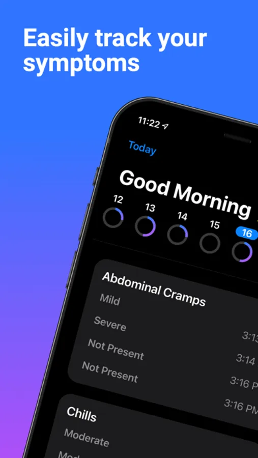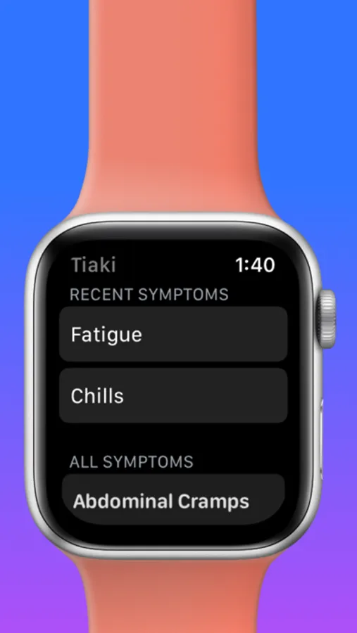 With HealthKit integration, Tiaki is able to store, sync and provide insights on your symptom data. Nothing ever leaves your apple account or phone.