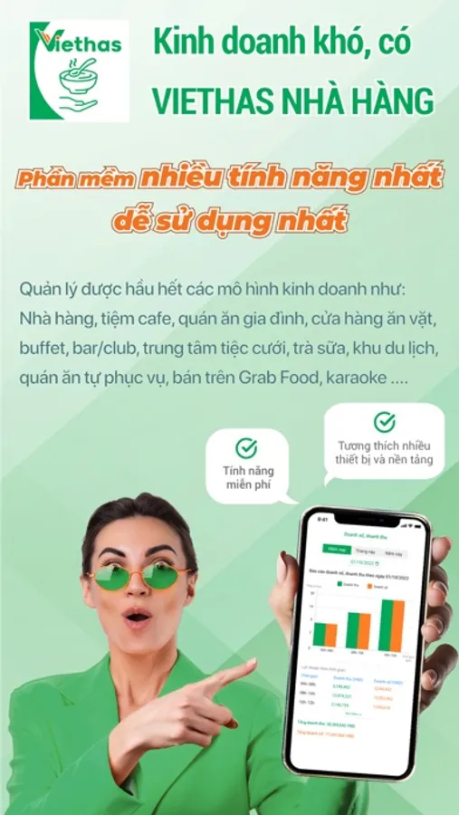 With a highly fluid and real-time system, all data will be synced and updated automatically, you can easily have your daily, monthly, and yearly at hand with multi-reports. No matter where you are, with only a smartphone and you will stay on top of things. In addition, Viethas helps you to reduce paperwork and hand calculation.
