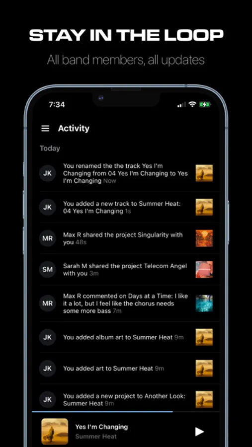 — Collaborate with your band: when you share an artist with your band on Demodeck, each member can edit the project whenever and wherever and will be automatically synced and notified whenever there is an update to a project.