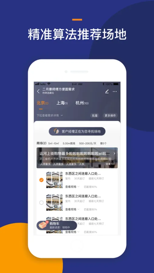 为客户提供基于客群画像的智能选址服务,将AI算法与行业资深人工推荐相结合,并引入第三方基于LBS的客群画像数据,结合沉淀的场地交易数据,为项目组和品牌方提供更为详细的智慧商圈报告。