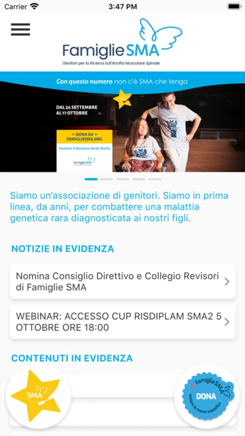 Questa app offre news, contenuti ed approfondimenti sulla SMA e sull'attività della nostra associazione.